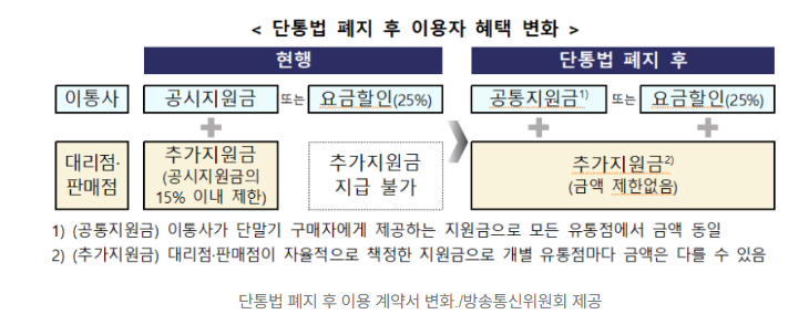 - 폐지 이후에는 공시지원금 + 추가지원금 병행 허용